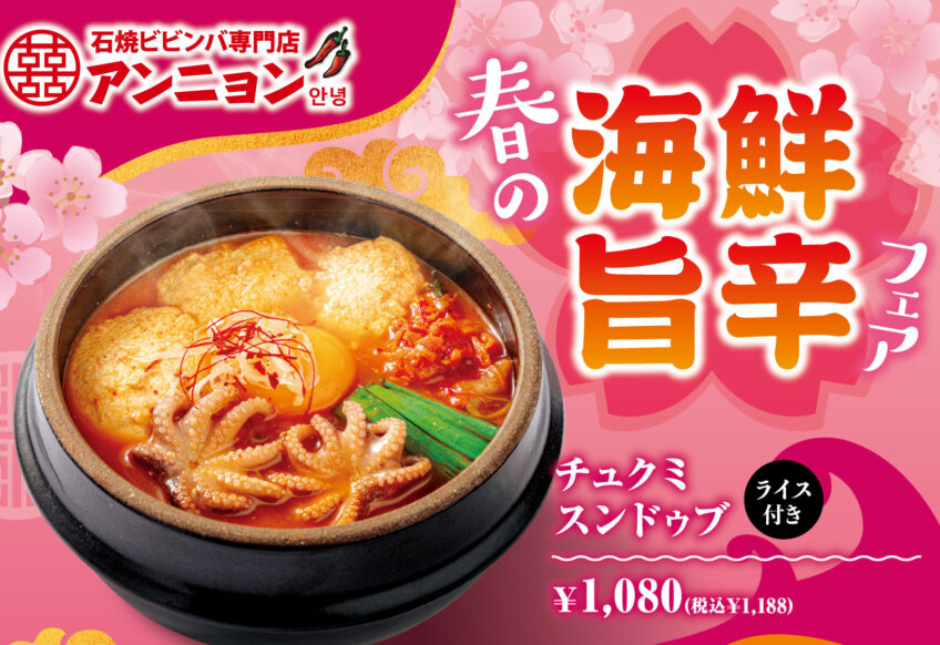 <旨い! 辛い! やみつきレベル!!「春の海鮮旨辛フェア」> 販売期間|2026年3月5日(木)~2026年5月31日(日) チュクミスンドゥブ[ライス付き] 韓国で人気の“チュクミ(イイダコ)” を使った旨辛スンドゥ...
