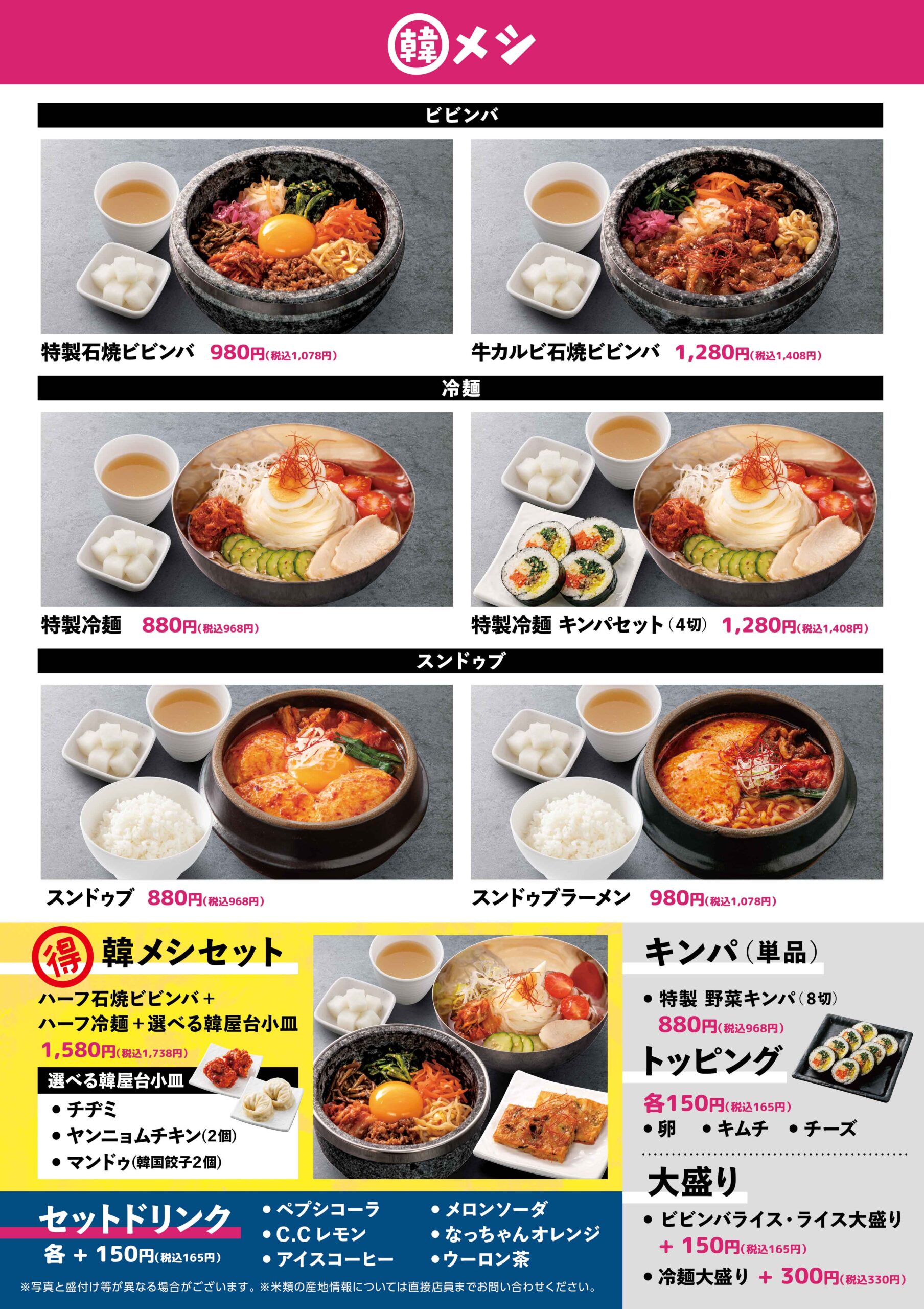 韓メシ&韓スイーツ メニュー