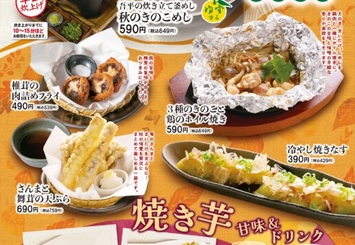 季節の移ろいを感じる「秋の味覚」を9 種類ご用意いたしました。 秋らしく、美味しさと芳醇な香りもお楽しみいただける「きのこ」や「舞茸」。 そして、甘味には焼き芋のブリュレやミルクと調和させたドリンクもご用意いたしました...