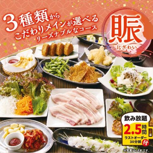 3種類からこだわりメイン選べる宴会コース『賑~にぎわい~』【飲放2時間30分付】4,480円