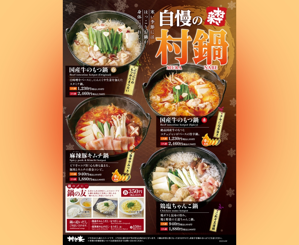 村さ来では 4種類のお鍋を ご用意いたしました。