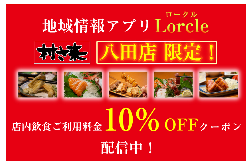 地域情報アプリLorcle(ロークル)村さ来 八田店 店内飲食ご利用料金10%OFFクーポン配信中!