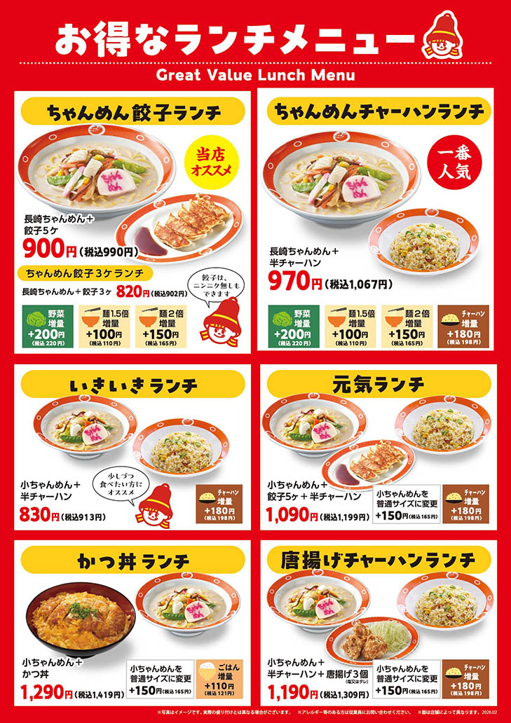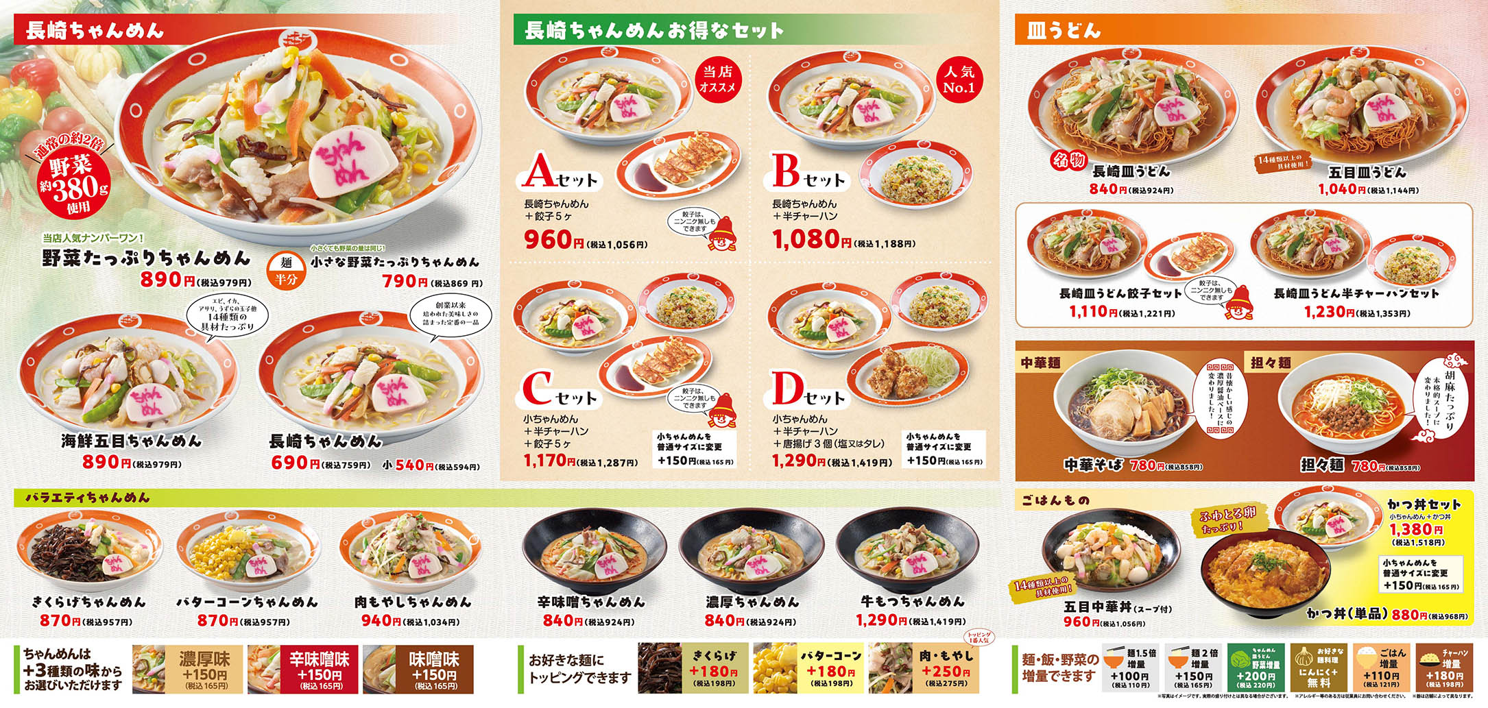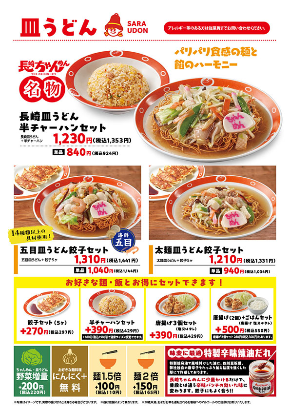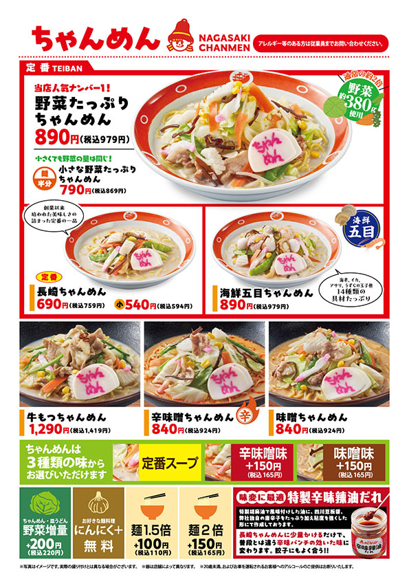 ※メニュー改定に伴い全ての「ちゃんめん」、「皿うどん」に『海老』が入ります。