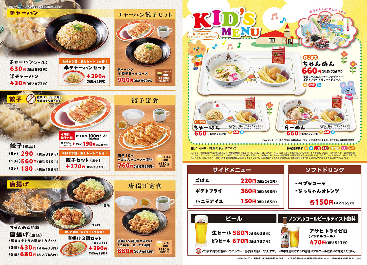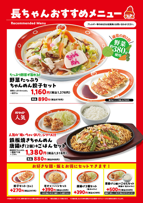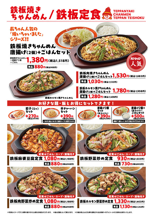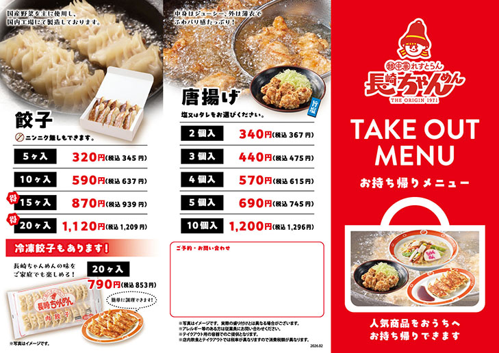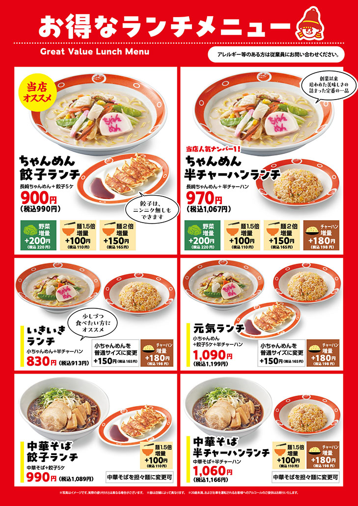 ※メニュー改定に伴い全ての「ちゃんめん」、「皿うどん」に『海老』が入ります。