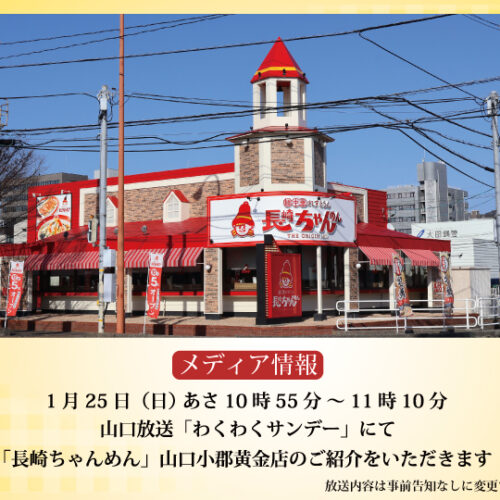 1月25日(日)山口放送「わくわくサンデー」にて長崎ちゃんめん 山口小郡黄金店の...