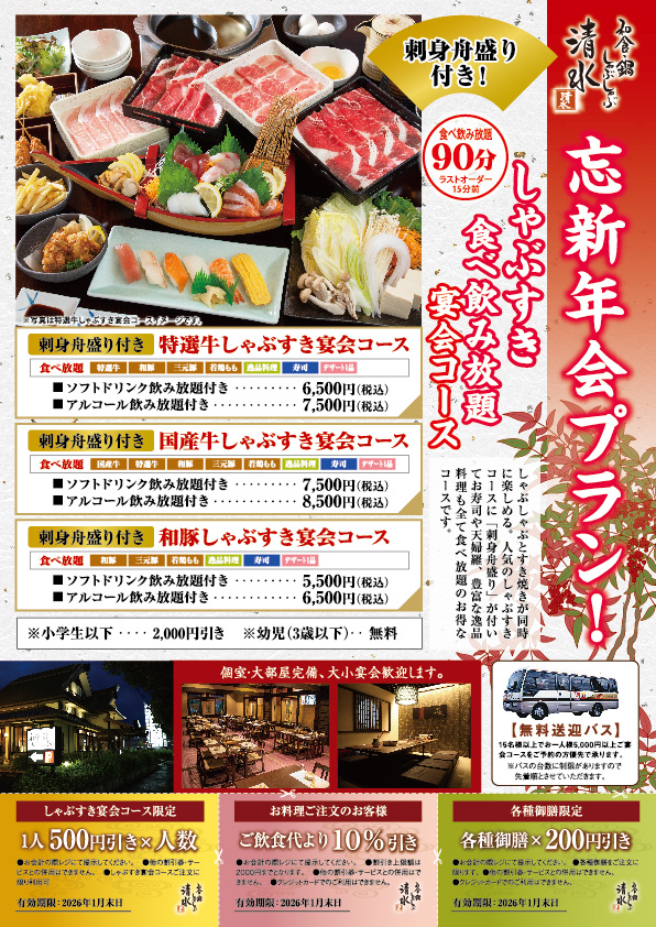 しゃぶしゃぶ清水『忘年会』のお知らせ