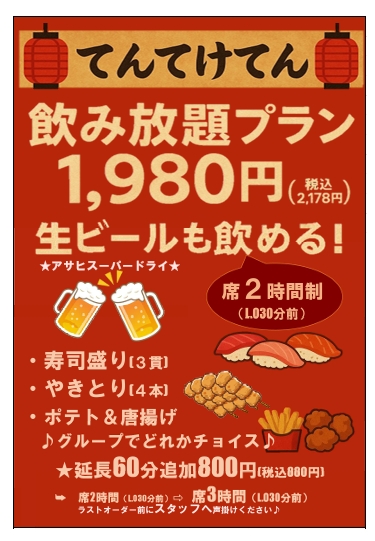 ■寿司盛り(3貫) ■やきとり(4本) ■ポテト&唐揚